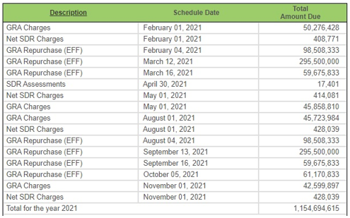 Украина постоянно выплачивает кредиты МВФ. Ближайшие платежи должны состояться 13 и 16 сентября, и наша страна должна совокупно отдать 394 млн СПЗ = $551,6 млн. А дальше до конца 2021 года будет платить суммы поменьше (график ниже).
