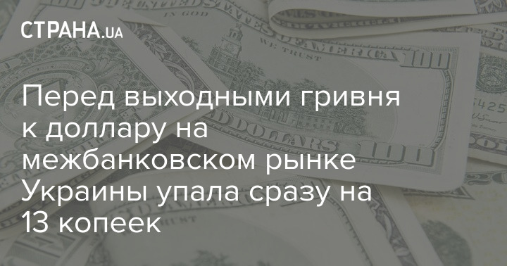 Перед выходными гривня к доллару на межбанковском рынке Украины упала сразу на 13 копеек