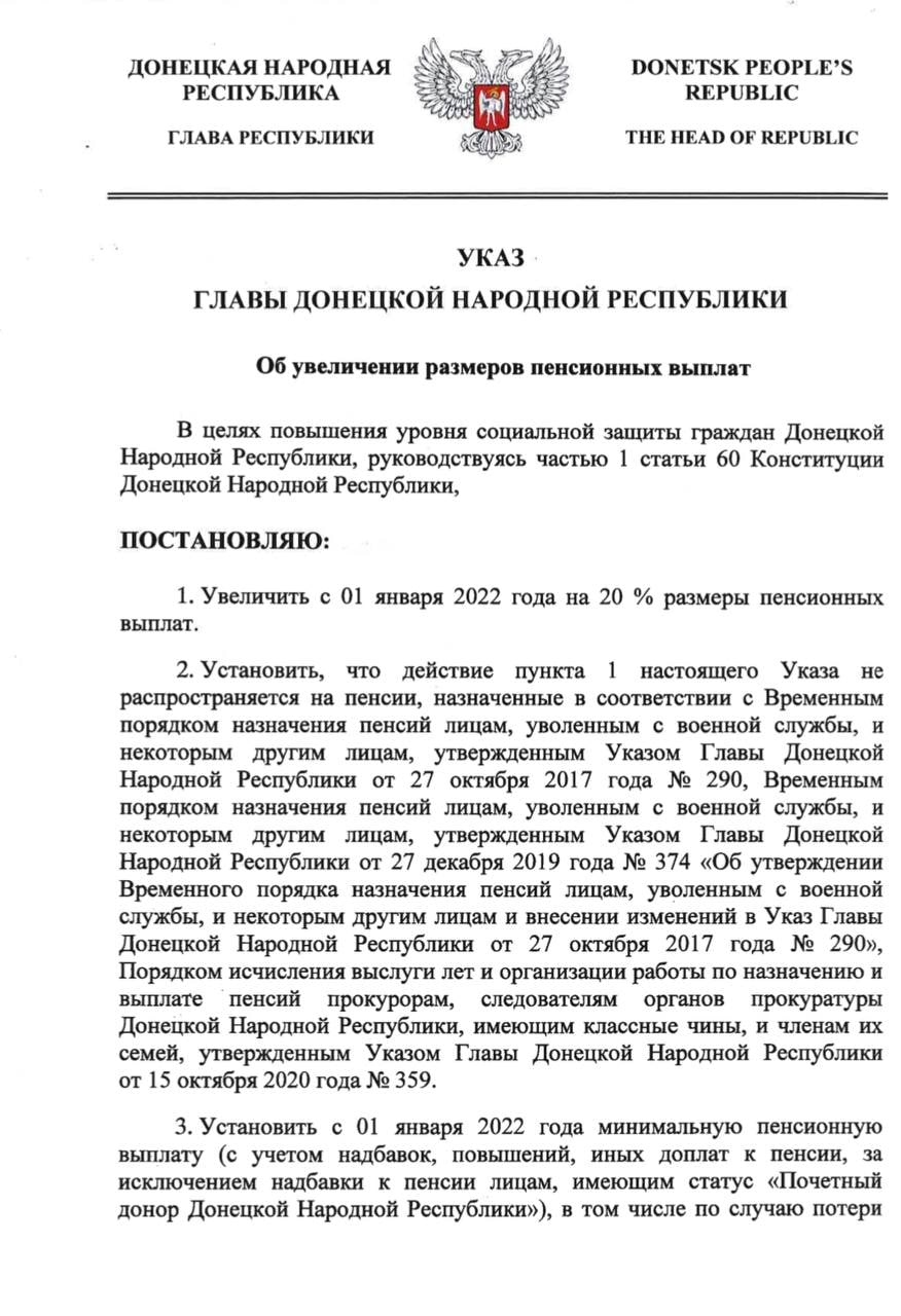 Об этом говорится в указе "главы ДНР" Дениса Пушилина.