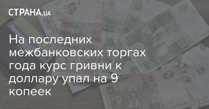 На последних межбанковских торгах года курс гривни к доллару упал на 9 копеек