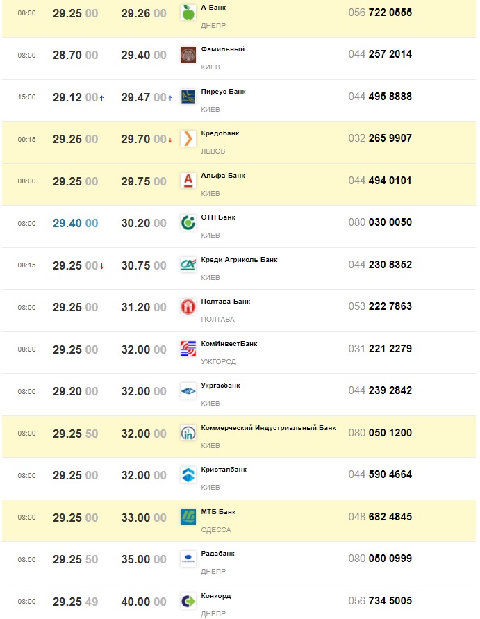 Самый распространенный курс выкупа — 29,25 грн/$. На этом же уровне установлен официальный курс Нацбанка.