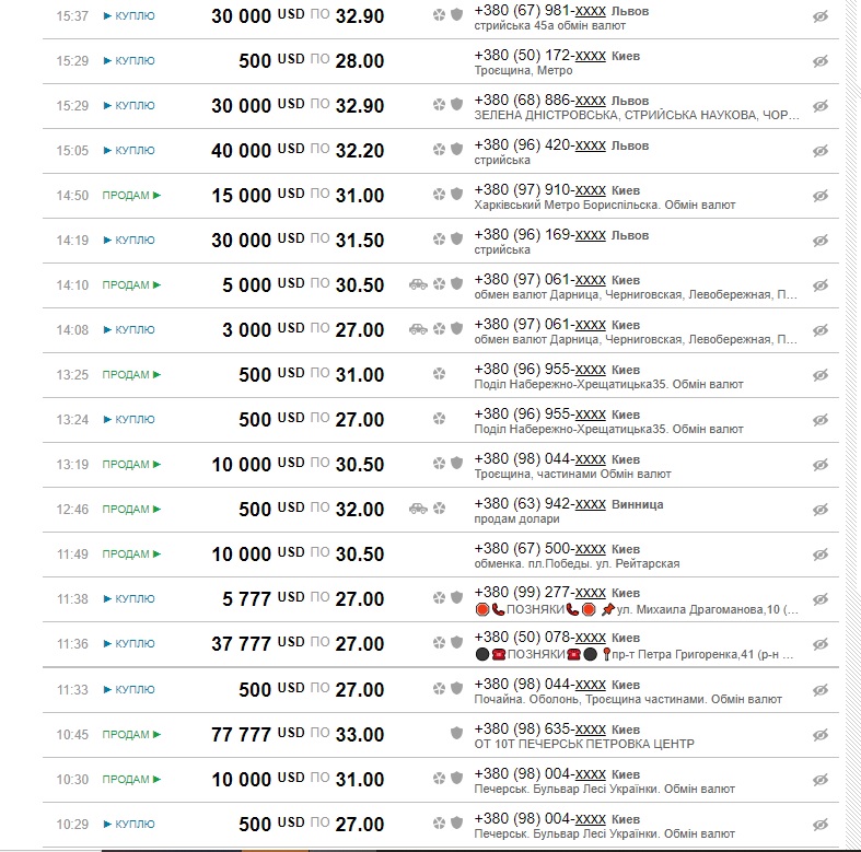 В отдельных городах максимальная стоимость американской валюты на продаже достигает 33,0 грн/$, 35,0 грн/$ и 40,0 грн/$. Эти ценники сегодня ставили МТБ Банк (Одесса), Радабанк (Днепр) и банк "Конкорд" (Днепр), соответственно.