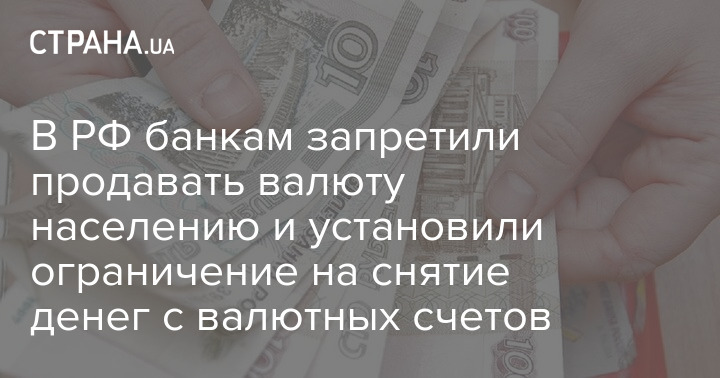 "Отныне банкам в РФ запрещено продавать населению наличную валюту, а снимать валюту с валютных вкладов можно только в объеме до 10 000 долларов США, причем если валюта вклада не доллары, банки обязали выдавать только доллары", - написал он.