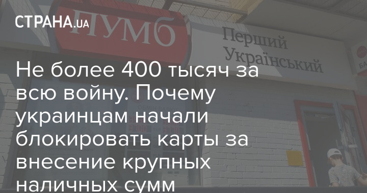 Человека, на счет которого во время военного положения поступило наличных зачислений (в сумме) на 400 тысяч гривен и выше, автоматически начинают подозревать в финансировании терроризма, потому отправляют информацию в СБУ, и ждут от нее отмашки для разблокировки после предоставления информации о происхождении денег.