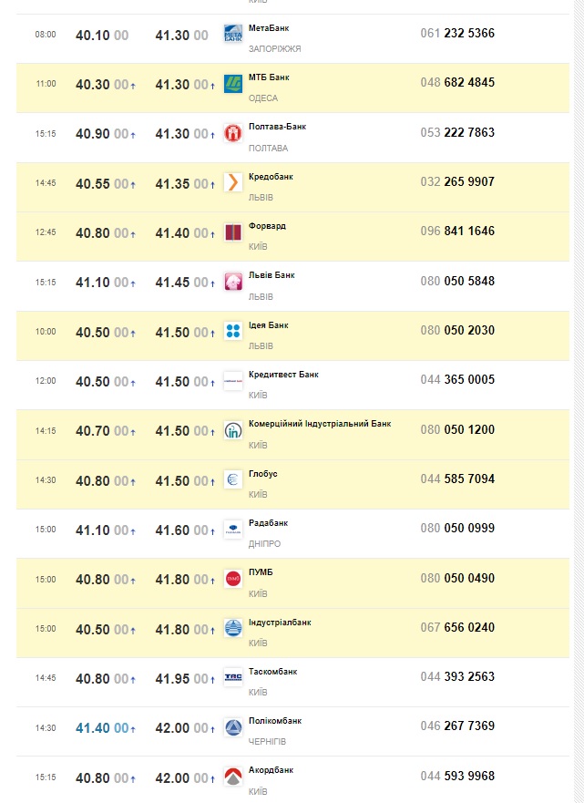 Самые низкие расценки уже по обыкновению держали госбанки, которых Нацбанк постоянно просит поддерживать отметку 40 грн/$: