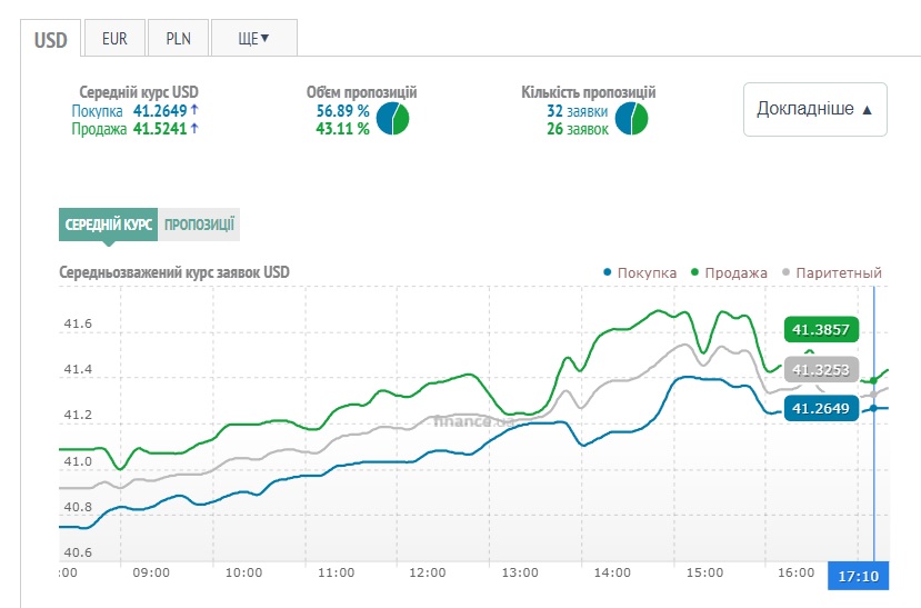 Только после 17 часов цены валютных менял отошли в район 41,4 грн/$, что выше утреннего старта и вчерашних расценок. Ощущался дефицит доллара, и спекулянты старались побольше заработать на проблеме.