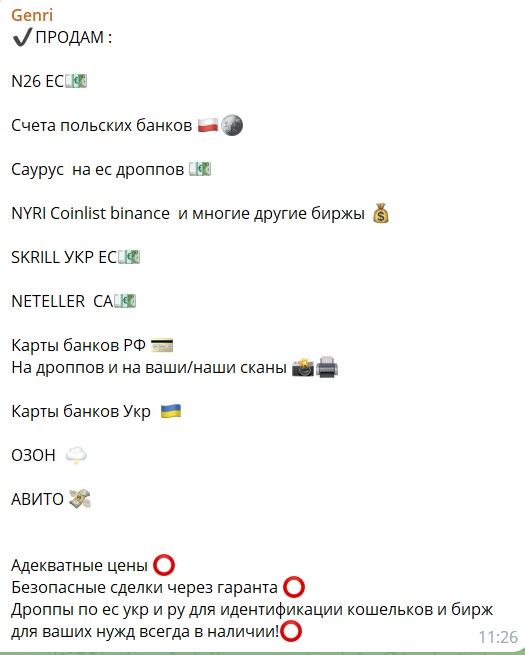 Поначалу бизнес был штучным, но после начала полномасштабного вторжения и увеличением числа украинцев за границей торговля банковскими картами была поставлена на поток и стала массовым явлением. Их перепродают почти так же, как кошельки электронных денег.