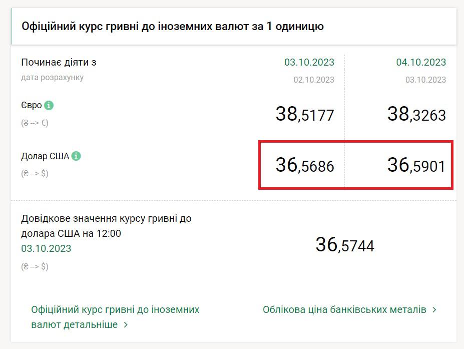 Напомним, что 24 февраля 2022 года Нацбанк зафиксировал свой официальный курс доллара США на уровне 29,25 грн/$, а 21 июля того же года поднял его до 36,57 грн/$ (этот показатель округлялся до 36,6 грн/$).