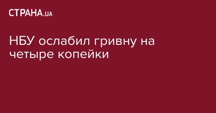 НБУ ослабил гривну на четыре копейки