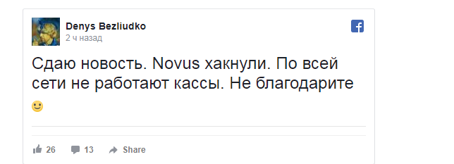 Вечером вторника, 24 октября, вероятно, в Киеве внезапно были закрыты супермаркеты сети Novus. Вероятно, это произошло в результате хакерской атаки или нового компьютерного вируса.