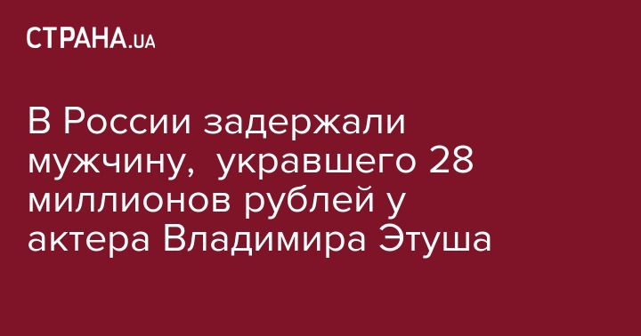 В России задержан подозреваемый в хищении 28 миллионов рублей, принадлежащих известному актеру Владимиру Этушу и его супруге. Об этом пишут РИА Новости.
