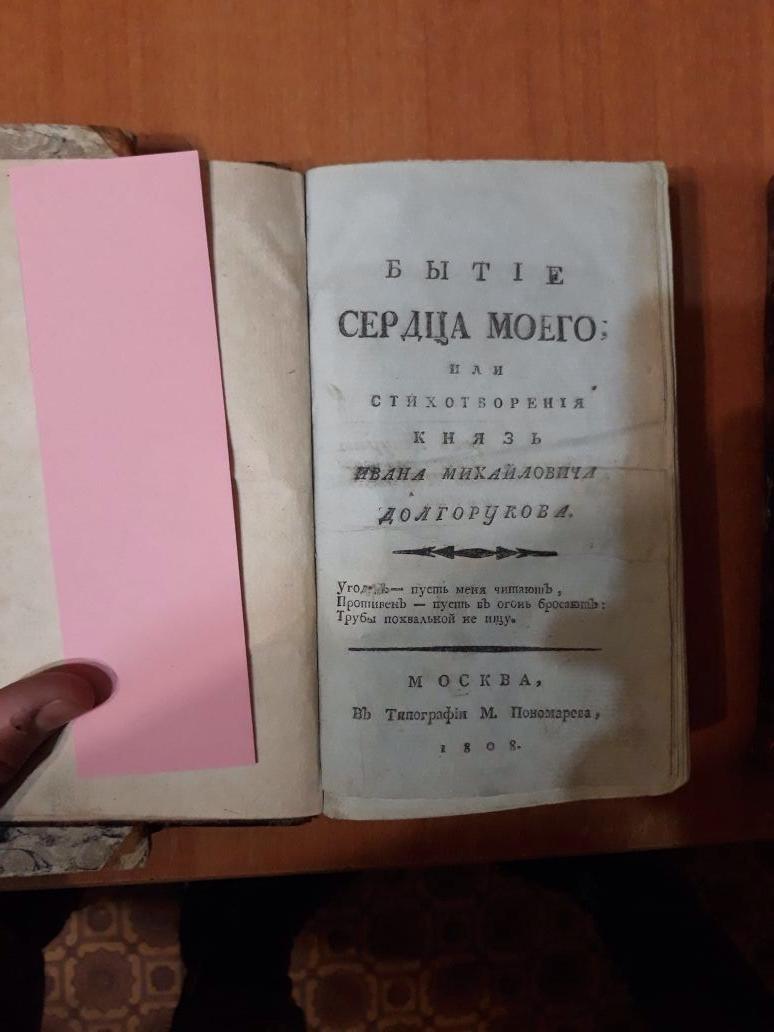Среди выявленных книг - "Церковная Истории" 1786 года, "Бытие Сердца Моего" (1808) и "Гонзалвъ Кордуанский Или Возвращенная Гренада" (1818).
