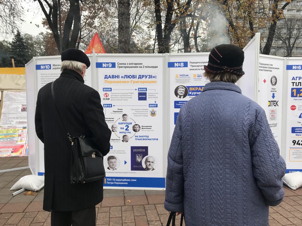 12:57 Ближе к Грушевского - информационный стенд с описанием "любых друзив" Порошенко.
