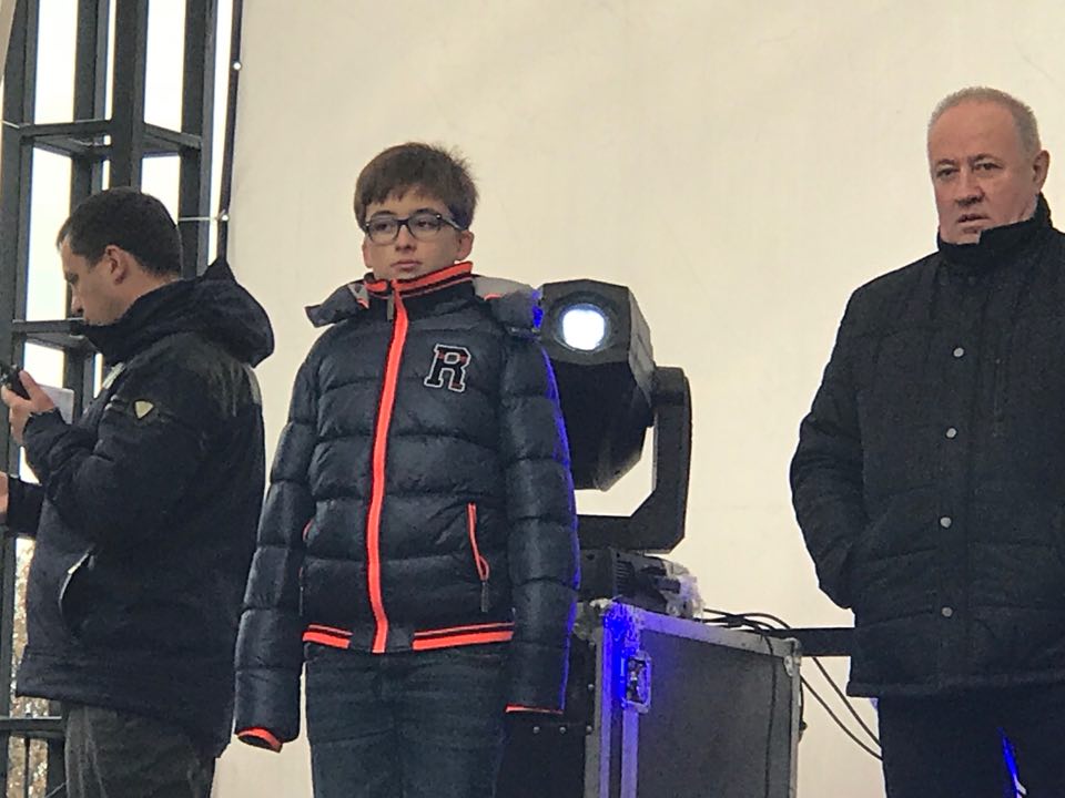 12:33 На сцене замерзший сын Михо, который сопровождал его из Польши в Украину.