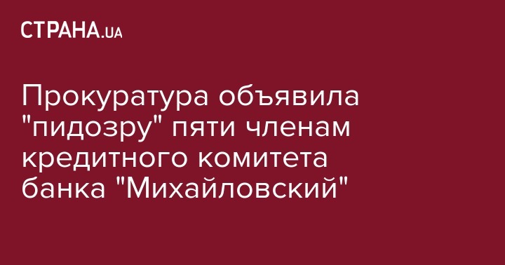 Столичная прокуратура объявила подозрение в незаконной выдаче кредитов на 500 млн грн пяти членам кредитного комитета банка "Михайловский".