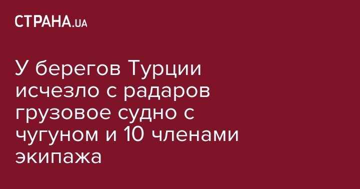У берегов Турции исчезло с радаров грузовое судно с чугуном и 10 членами экипажа