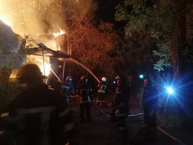 В сети появились фотографии с пожара в двухэтажном корпусе санатория "Красные Зори" в Одессе, который разгорелся вчера вечером. В процессу тушения крыша горящего здания обрушилась вместе с перекрытиями.