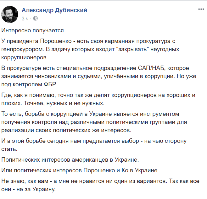 Дело сына Авакова показало, что американцы включились в борьбу с коррупцией в Украине, считает журналист Александр Дубинский.