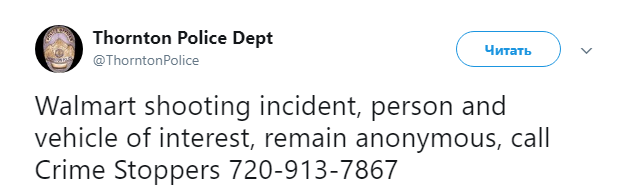 Напомним, что в результате стрельбы двое мужчин погибли на месте - в супермаркете Walmart, а женщина скончалась от ран уже в больнице. На данный момент подозреваемый не задержан. Известно, что он вошел в супермаркет и сразу открыл стрельбу. После этого скрылся на автомобиле.