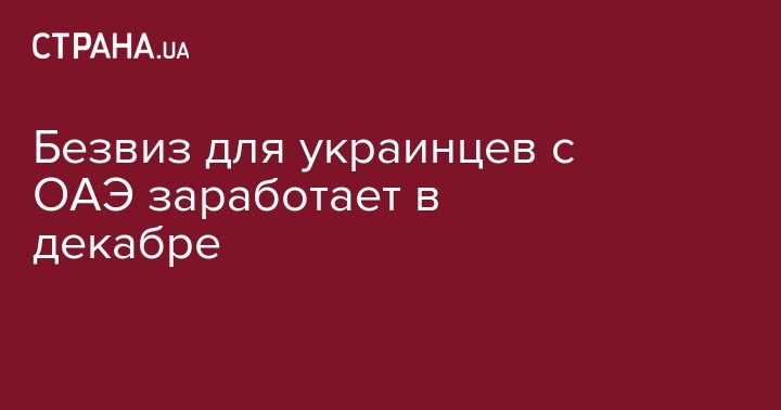 Безвиз для украинцев с ОАЭ заработает в декабре