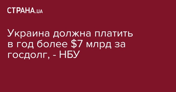 Украина должна платить в год более $7 млрд за госдолг, - НБУ