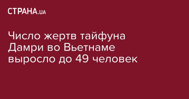 Количество погибших в результате тайфуна Дамри, который обрушился на Вьетнам на этих выходных, увеличилось до 49 человек. Об этом сообщает Reuters.