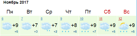 Сайт Weather.com обещает преимущественно облачную погоду всю неделю. При этом осадков не ожидается. Днем +7...+10.