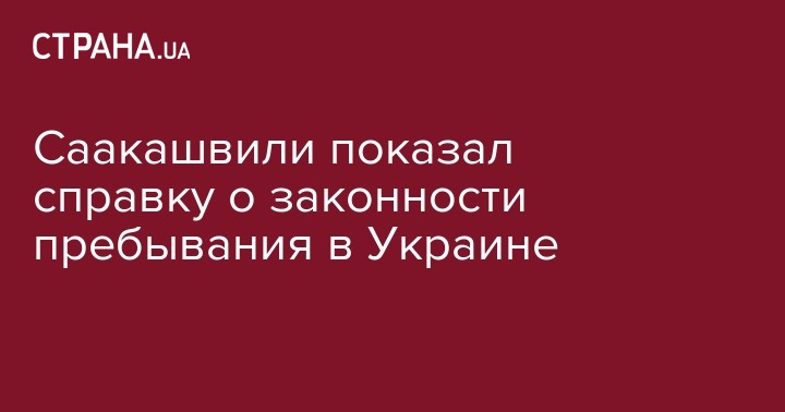 Лишенный украинского гражданства экс-глава Одесской обладминистрации и экс-президент Грузии Михаил Саакашвили заявляет, что получил от Государственной миграционной службы Украины документ, подтверждающий легальность его нахождения на территории Украины.