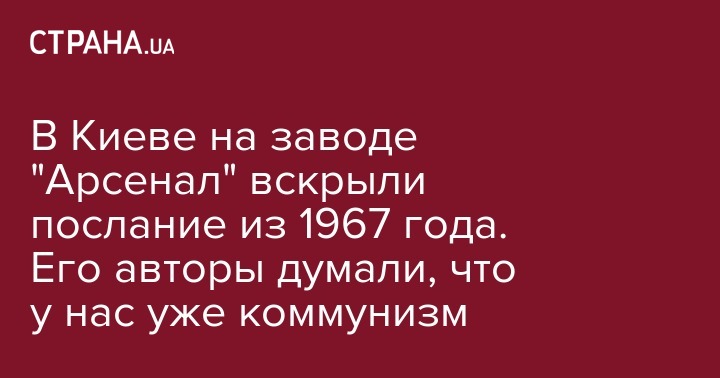 В Киеве на заводе "Арсенал" вскрыли железную "капсулу времени", которая была замурована в одной из стен в 1967 году. Послание попросили вскрыть к 100-летию Октября.
