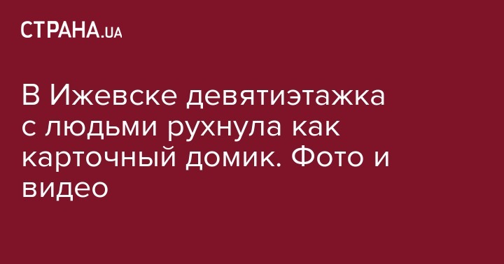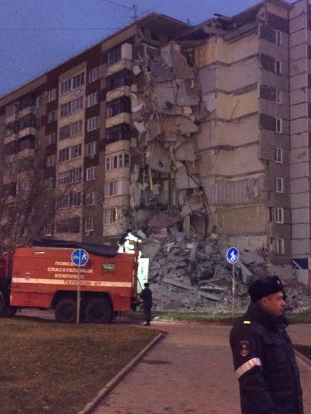 В Ижевске (Россия) часть жилого дома обрушилась с первого по девятый этажи, по предварительным данным, есть пострадавшие.
