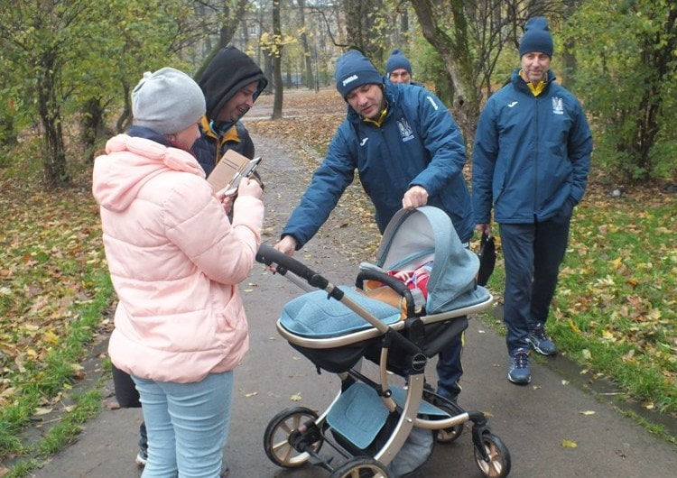 Сборная Украины прогулялась под дождем в сопровождении фанатов и мамочек с колясками