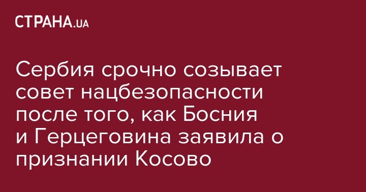 Сербия срочно созывает совет нацбезопасности после того, как Босния и Герцеговина заявила о признании Косово