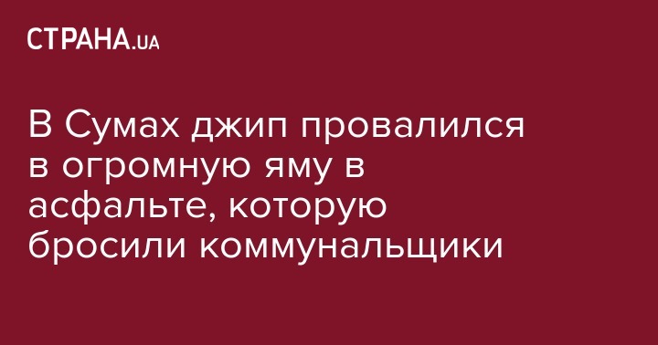 В Сумах джип провалился в огромную яму в асфальте, которую бросили коммунальщики