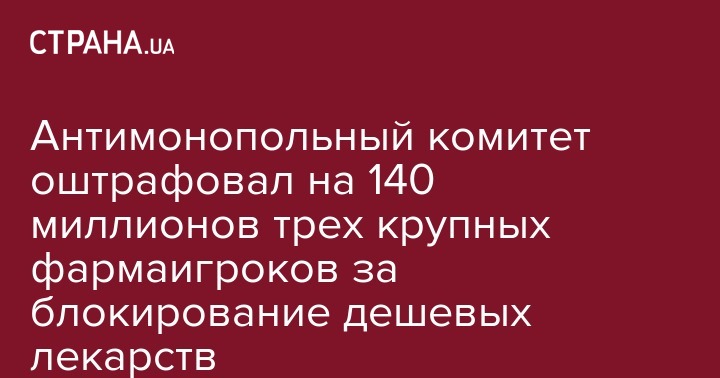 Антимонопольный комитет оштрафовал на 140 миллионов трех крупных фармаигроков за блокирование дешевых лекарств