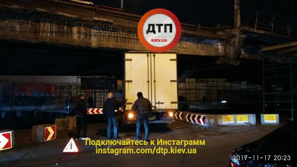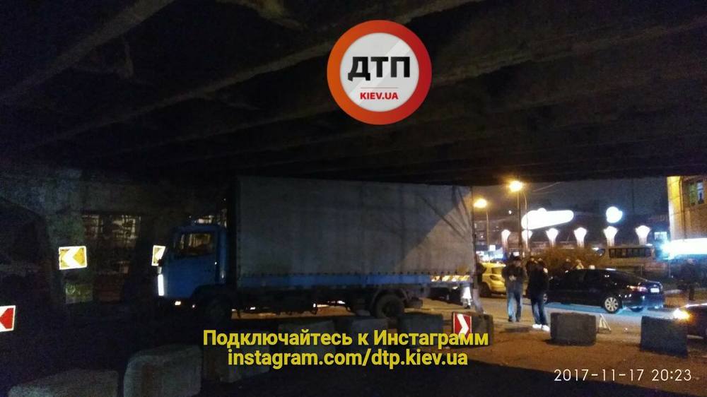 Вечером 17 ноября,  в пятницу, в Киеве под Шулявским мостом застрял грузовик. Об этом сообщает портал dtp.kiev.ua в социальной сети Facebook.