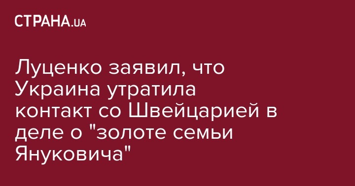 Луценко заявил, что Украина утратила контакт со Швейцарией в деле о "золоте семьи Януковича"