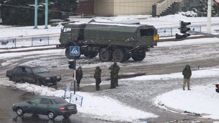 В Луганске продолжается "государственный переворот". 21 ноября в центре города появились вооруженные люди в масках, которые оцепили главные здания, не пропуская туда гражданских.