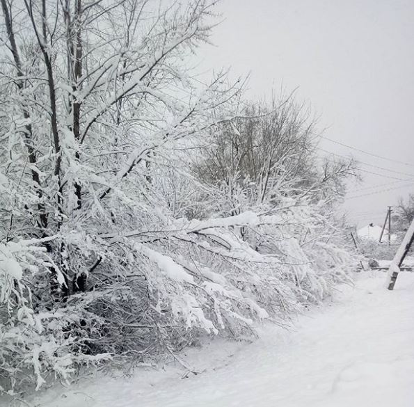 В Лисичанске из-за сильного снегопада начали падать деревья, в результате чего была необходима помощь спасателей. Такая же ситуация в Новодружевске и Приволье.