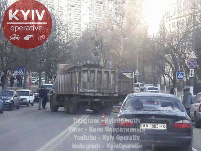 Два грузовика с землей столкнулись у полицейской академии в Киеве
