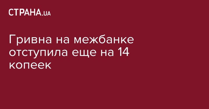 На 14 копеек снизилась гривна на межбанковском валютном рынке в четверг до 26,86 грн/$1 с 26,72 грн/$1 в предыдущий рабочий день.