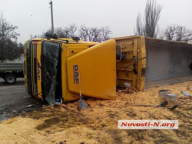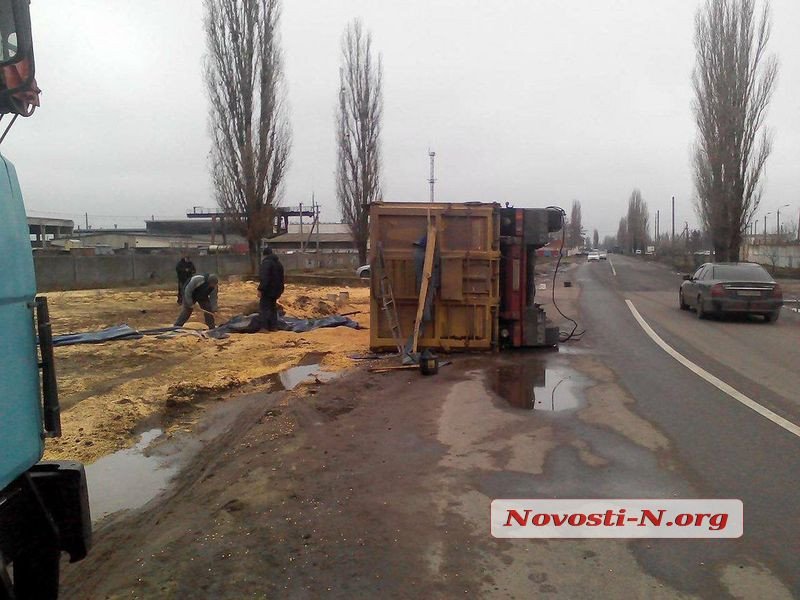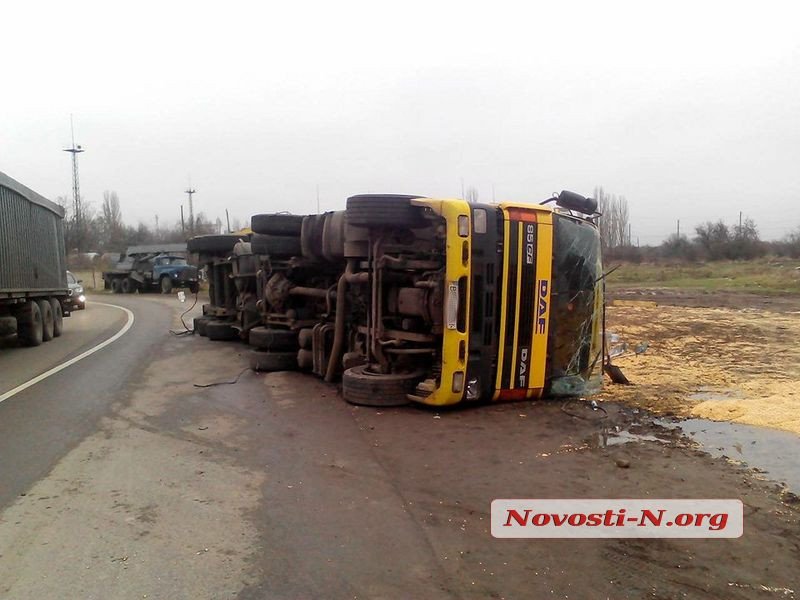 В Николаеве на дороге опрокинулась фура с кукурузой
