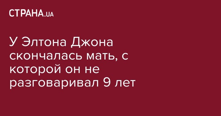 У Элтона Джона скончалась мать, с которой он не разговаривал 9 лет
