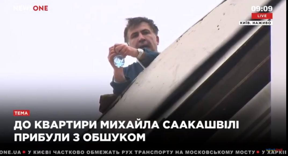 Утром 5 декабря, во время проведения обыска в жилье Михаила Саакашвили лидер "Руха новых сил" ушел на крышу. Оттуда он обращается к своим соратникам. которые собрались внизу.