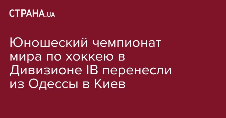В Международной федерации хоккея (IIHF) одобрили запрос Федерации хоккея Украины о переносе юношеского Чемпионата мира по хоккею в Дивизионе IB. Вместо ранее утвержденной Одессы, турнир решено перенести в Киев.
