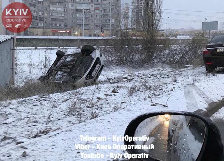 Утром 6 декабря в Киеве на Троещине при выезде на Московский мост перевернулся автомобиль. Об этом пишет портал "Киев оперативный" на странице в Facebook.