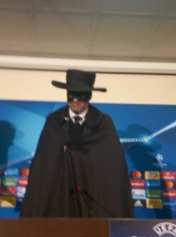 Таким образом он выполнил обещание, данное журналистам 2 ноября, что если его команда выйдет в в 1/8 Лиги чемпионов, то тренер будет рад примерить образ героя Зорро в шляпе и плаще.