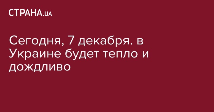 Сегодня, 7 декабря. в Украине будет тепло и дождливо