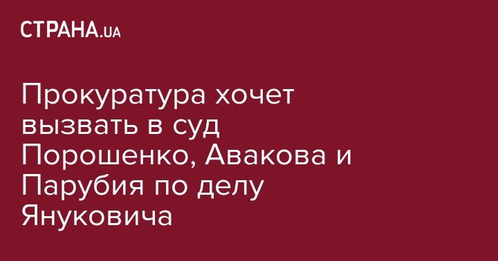 Кроме Порошенко прокуратура хочет видеть в суде министра внутренних дел Арсена Авакова, посла в Польше Андрея Дещицу и главу Верховной Рады Андрея Парубия.
