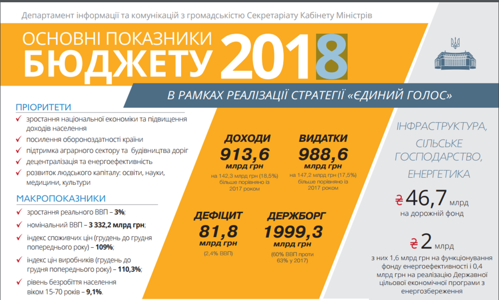 60% ВВП на долги. Главные цифры госбюджета-2018. Инфографика