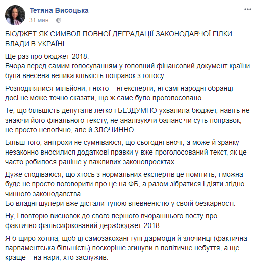 То, что большинство депутатов легко и необдуманно приняла бюджет, даже не зная его финального текста, не анализируя баланс или суть поправок, не просто нелогично, но и преступно.